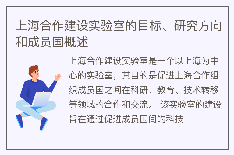 上海合作建设实验室是一个以上海为中心的实验室,其目的是促进上海合作组织成员国之间在科研、教育、技术转移等领域的合作和交流。 该实验室的建设旨在通过促进成员国间的科技......【点击详情】