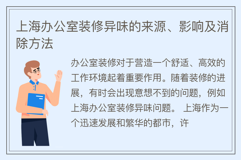 办公室装修对于营造一个舒适、高效的工作环境起着重要作用。随着装修的进展,有时会出现意想不到的问题,例如上海办公室装修异味问题。 上海作为一个迅速发展和繁华的都市,许......【点击详情】