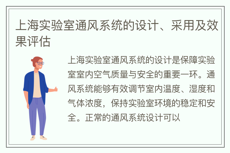 上海实验室通风系统的设计是保障实验室室内空气质量与安全的重要一环。通风系统能够有效调节室内温度、湿度和气体浓度,保持实验室环境的稳定和安全。正常的通风系统设计可以......【点击详情】