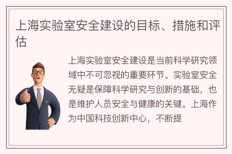 上海实验室安全建设的目标、措施和评估