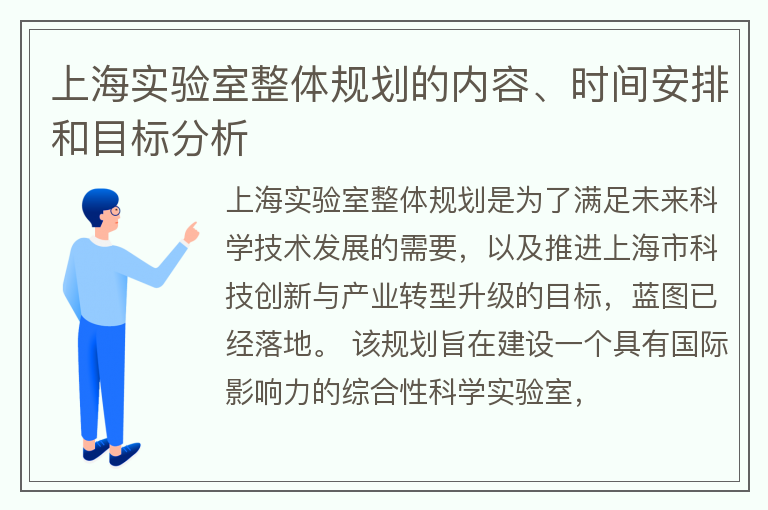 上海实验室整体规划的内容、时间安排和目标分析