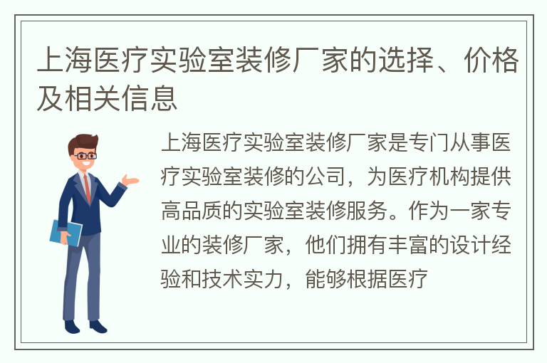 上海医疗实验室装修厂家的选择、价格及相关信息