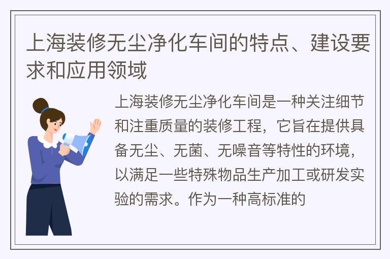 上海装修无尘净化车间的特点、建设要求和应用领域