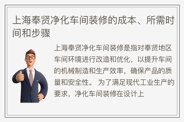 上海奉贤净化车间装修的成本、所需时间和步骤