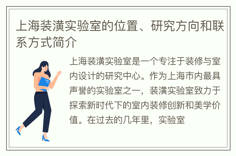 上海装潢实验室是一个专注于装修与室内设计的研究中心。作为上海市内最具声誉的实验室之一,装潢实验室致力于探索新时代下的室内装修创新和美学价值。在过去的几年里,实验室......【点击详情】