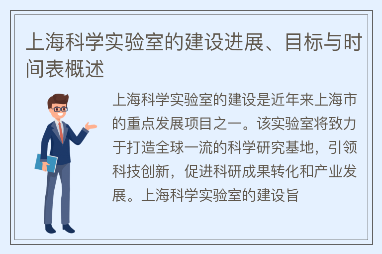 上海科学实验室的建设是近年来上海市的重点发展项目之一。该实验室将致力于打造全球一流的科学研究基地,引领科技创新,促进科研成果转化和产业发展。上海科学实验室的建设旨......【点击详情】