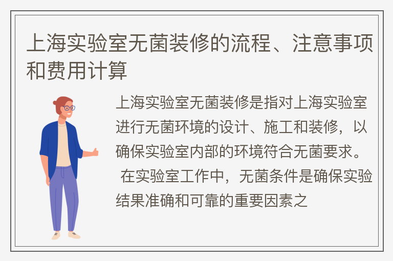 上海实验室无菌装修是指对上海实验室进行无菌环境的设计、施工和装修,以确保实验室内部的环境符合无菌要求。 在实验室工作中,无菌条件是确保实验结果准确和可靠的重要因素之......【点击详情】