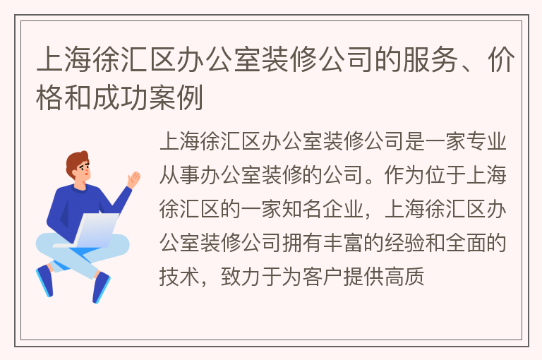 上海徐汇区办公室装修公司的服务、价格和成功案例