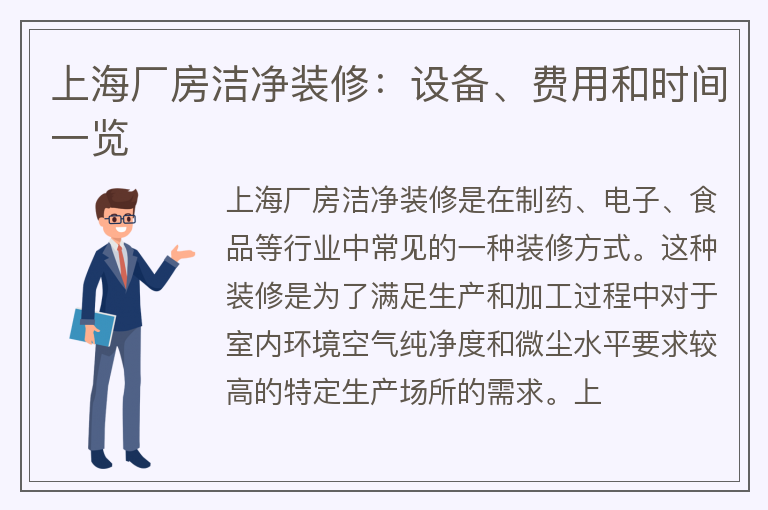 上海厂房洁净装修:设备、费用和时间一览