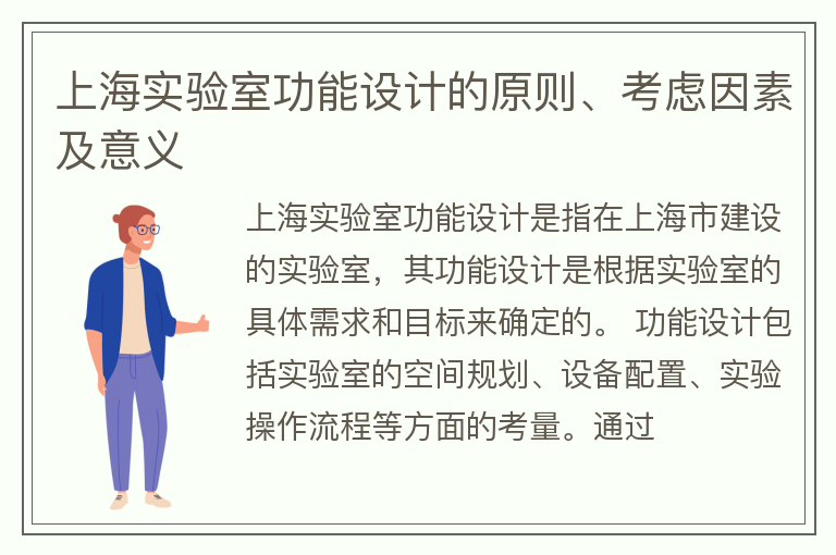 上海实验室功能设计的原则、考虑因素及意义