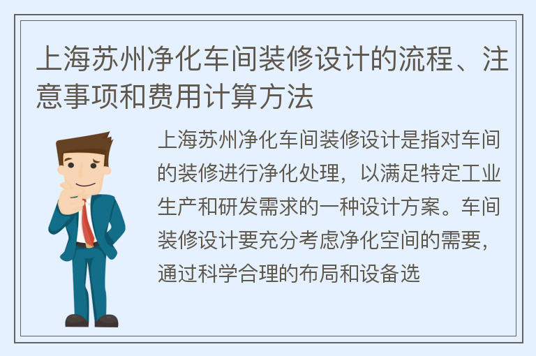 上海苏州净化车间装修设计的流程、注意事项和费用计算方法