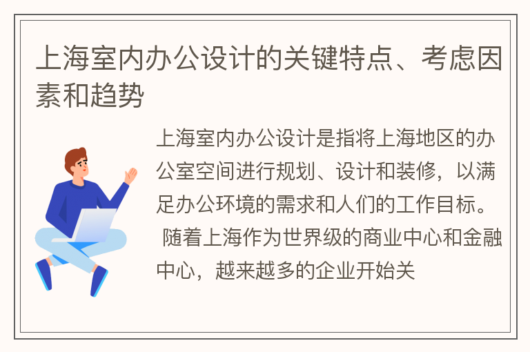 上海室内办公设计的关键特点、考虑因素和趋势