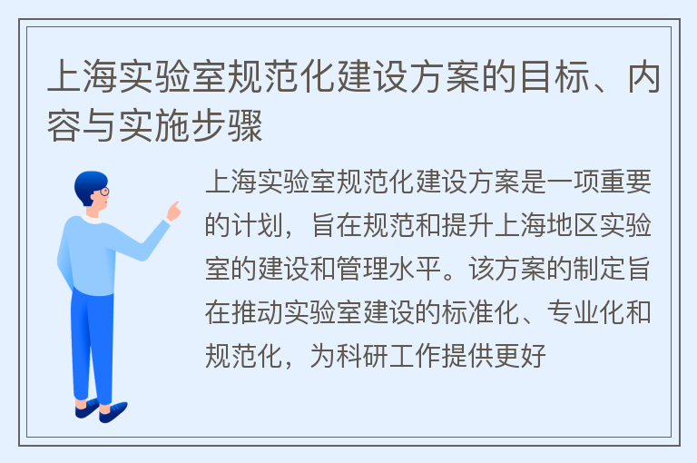 上海实验室规范化建设方案的目标、内容与实施步骤