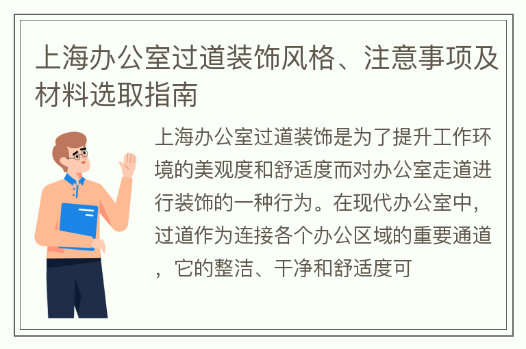 上海办公室过道装饰风格、注意事项及材料选取指南