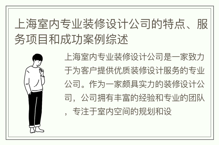 上海室内专业装修设计公司的特点、服务项目和成功案例综述