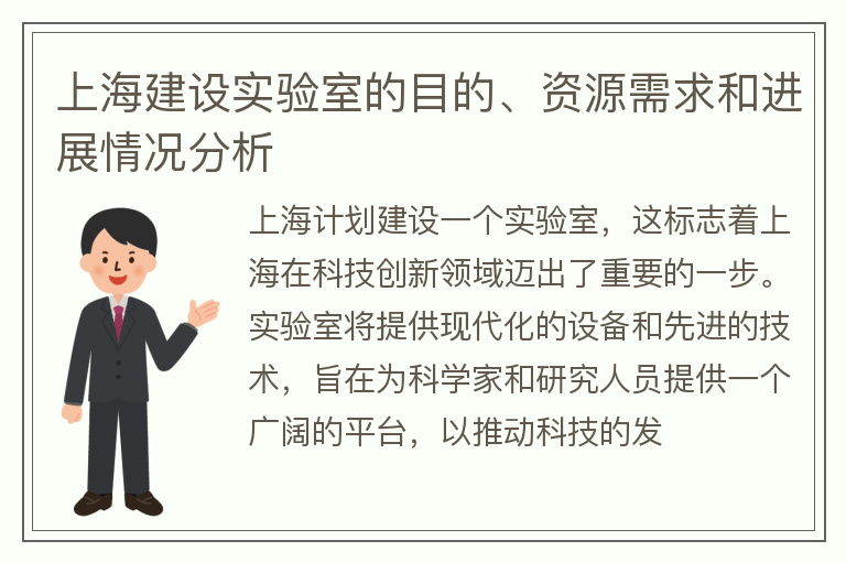 上海建设实验室的目的、资源需求和进展情况分析