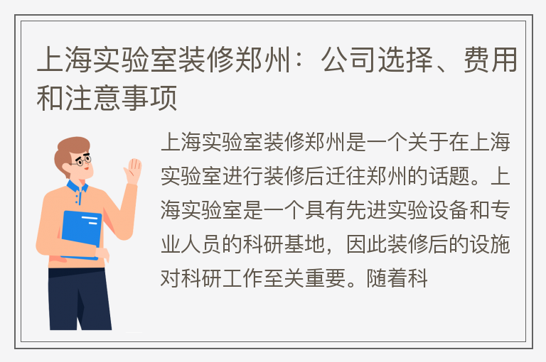 上海实验室装修郑州:公司选择、费用和注意事项