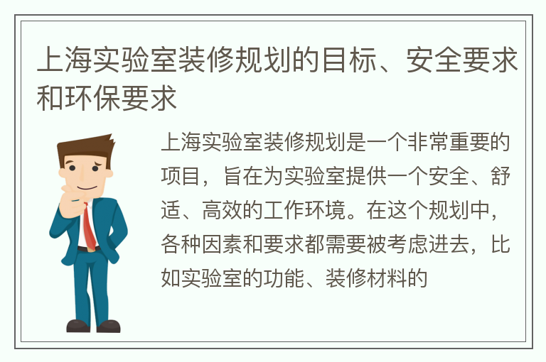 上海实验室装修规划的目标、安全要求和环保要求