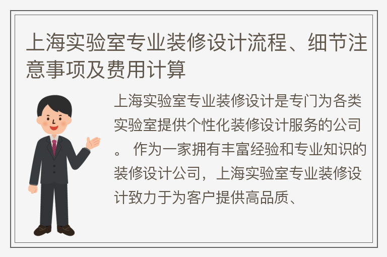 上海实验室专业装修设计流程、细节注意事项及费用计算