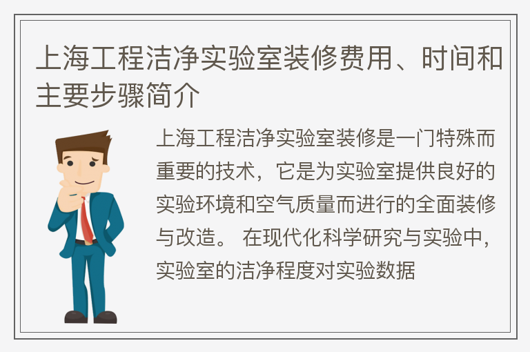 上海工程洁净实验室装修费用、时间和主要步骤简介