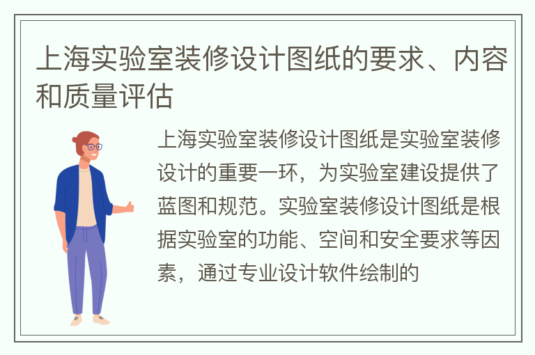 上海实验室装修设计图纸是实验室装修设计的重要一环,为实验室建设提供了蓝图和规范。实验室装修设计图纸是根据实验室的功能、空间和安全要求等因素,通过专业设计软件绘制的......【点击详情】