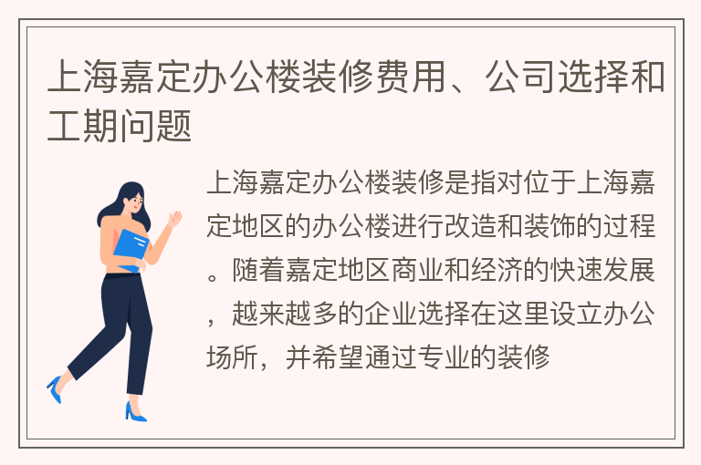 上海嘉定办公楼装修费用、公司选择和工期问题