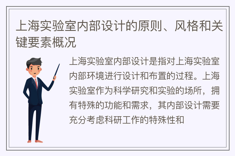 上海实验室内部设计是指对上海实验室内部环境进行设计和布置的过程。上海实验室作为科学研究和实验的场所,拥有特殊的功能和需求,其内部设计需要充分考虑科研工作的特殊性和......【点击详情】