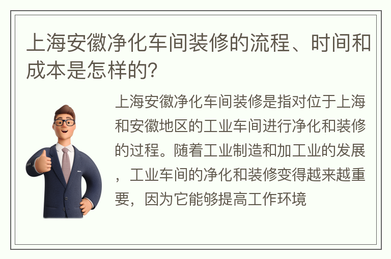 上海安徽净化车间装修的流程、时间和成本是怎样的?