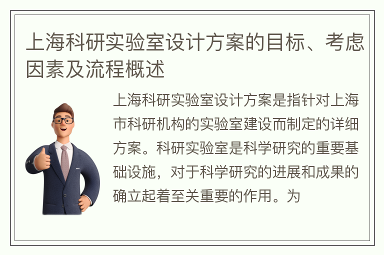 上海科研实验室设计方案的目标、考虑因素及流程概述