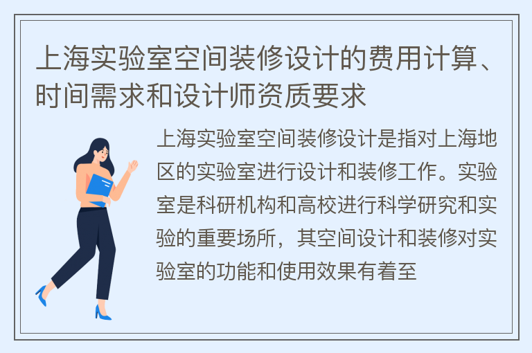 上海实验室空间装修设计的费用计算、时间需求和设计师资质要求