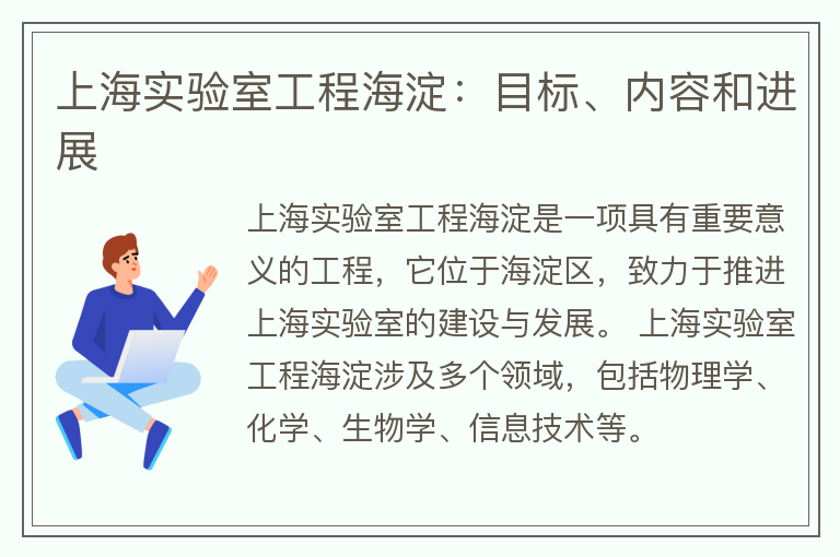 上海实验室工程海淀是一项具有重要意义的工程,它位于海淀区,致力于推进上海实验室的建设与发展。 上海实验室工程海淀涉及多个领域,包括物理学、化学、生物学、信息技术等。......【点击详情】