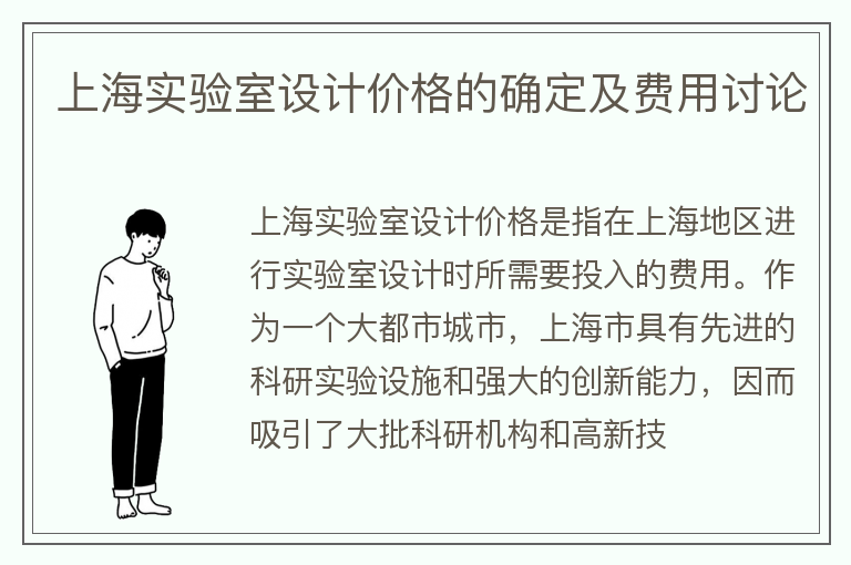 上海实验室设计价格是指在上海地区进行实验室设计时所需要投入的费用。作为一个大都市城市,上海市具有先进的科研实验设施和强大的创新能力,因而吸引了大批科研机构和高新技......【点击详情】