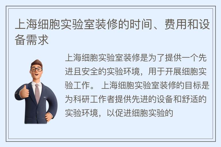 上海细胞实验室装修的时间、费用和设备需求