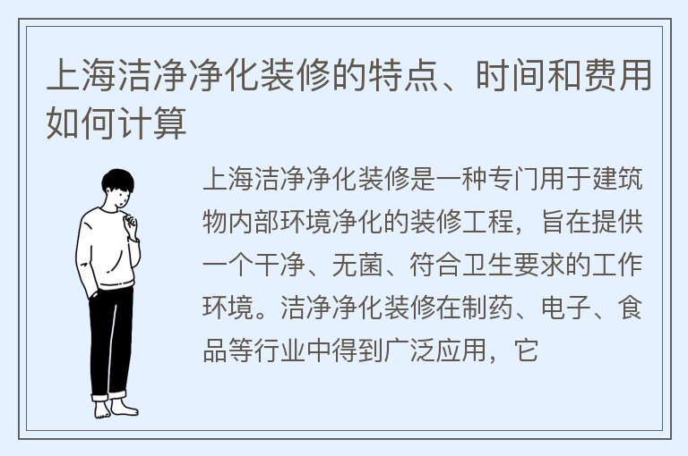 上海洁净净化装修的特点、时间和费用如何计算