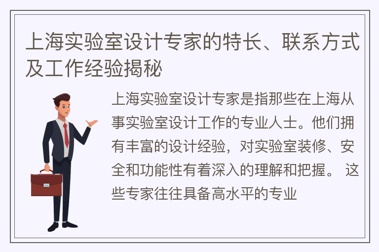 上海实验室设计专家的特长、联系方式及工作经验揭秘