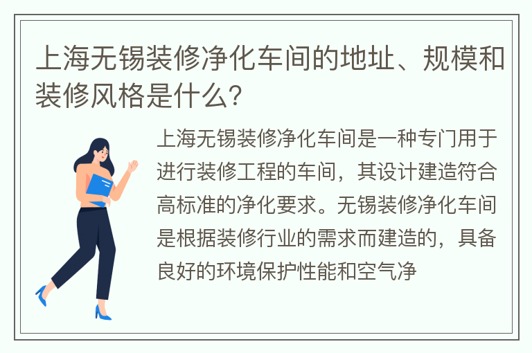 上海无锡装修净化车间的地址、规模和装修风格是什么?