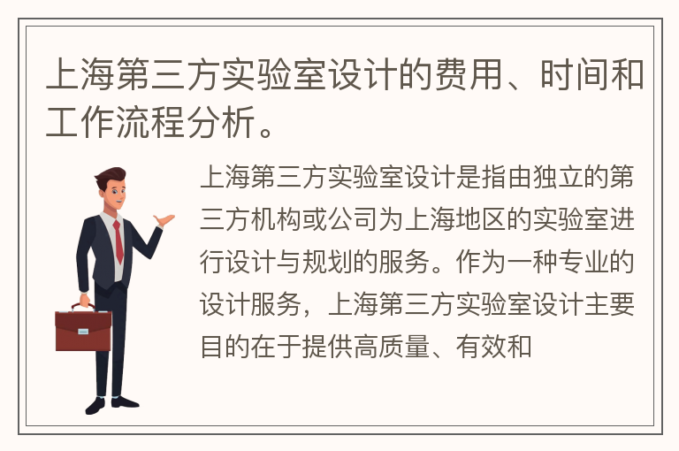 上海第三方实验室设计的费用、时间和工作流程分析。