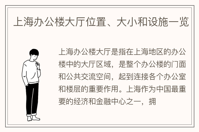 上海办公楼大厅是指在上海地区的办公楼中的大厅区域,是整个办公楼的门面和公共交流空间,起到连接各个办公室和楼层的重要作用。上海作为中国最重要的经济和金融中心之一,拥......【点击详情】