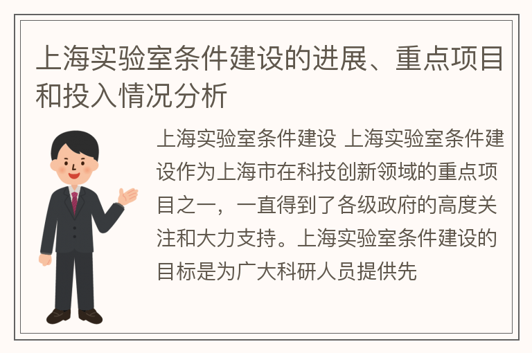 上海实验室条件建设的进展、重点项目和投入情况分析