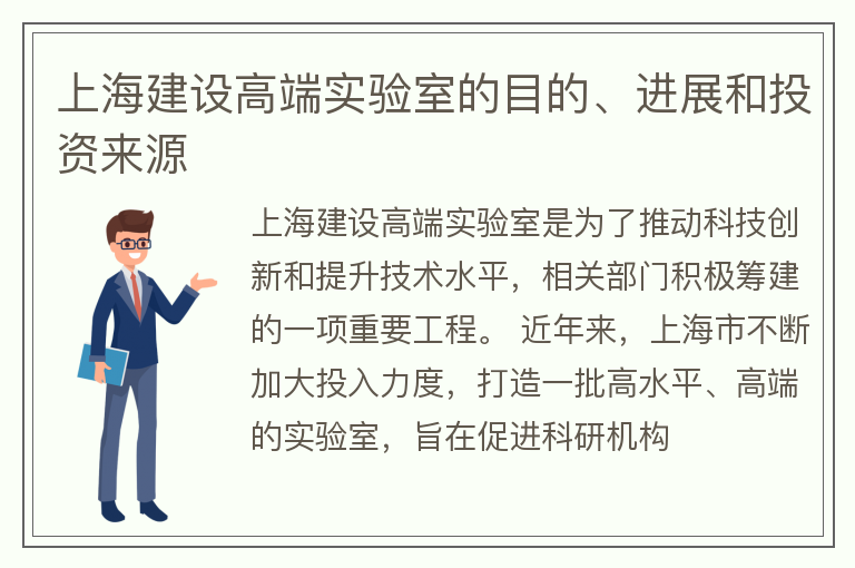上海建设高端实验室的目的、进展和投资来源