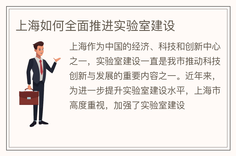 上海如何全面推进实验室建设