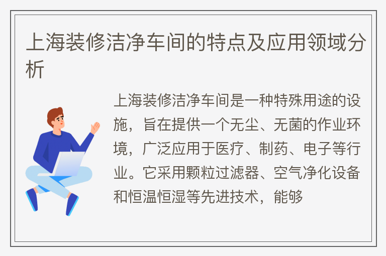 上海装修洁净车间的特点及应用领域分析