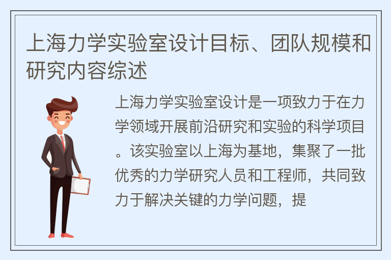 上海力学实验室设计是一项致力于在力学领域开展前沿研究和实验的科学项目。该实验室以上海为基地,集聚了一批优秀的力学研究人员和工程师,共同致力于解决关键的力学问题,提......【点击详情】