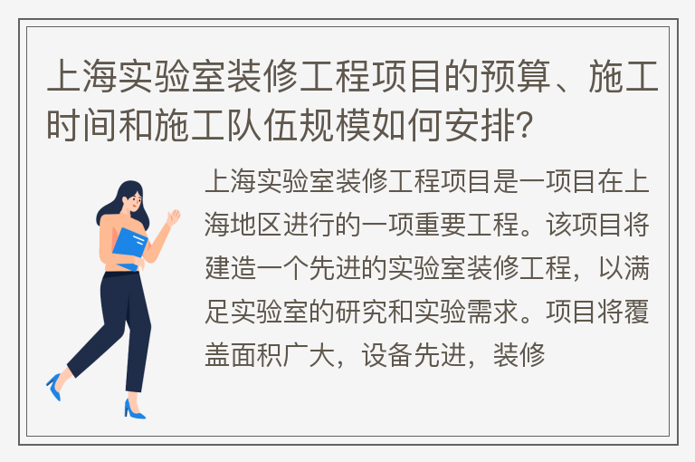 上海实验室装修工程项目的预算、施工时间和施工队伍规模如何安排?