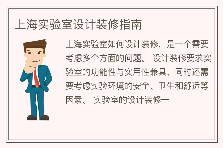 上海实验室设计装修指南