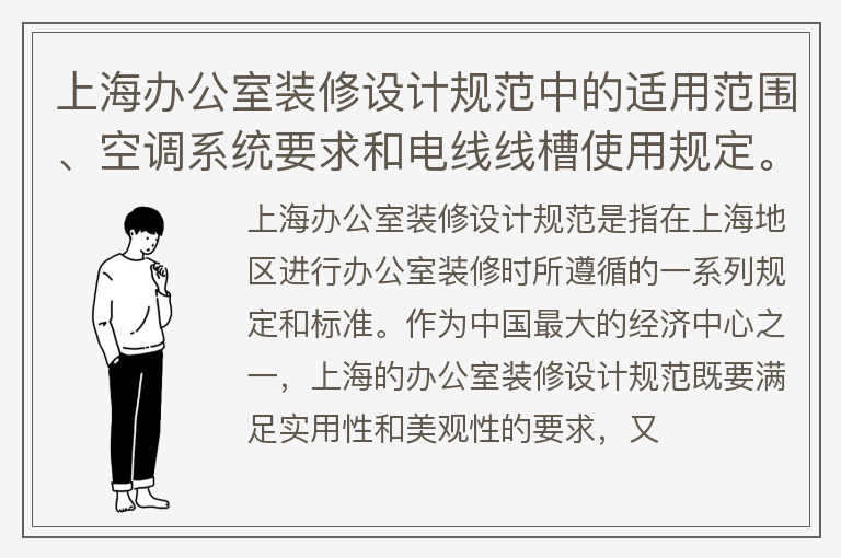 上海办公室装修设计规范中的适用范围、空调系统要求和电线线槽使用规定。