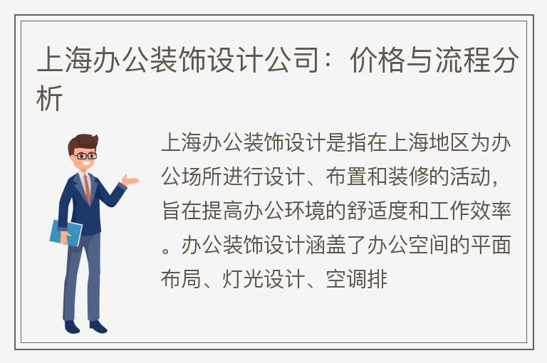 上海办公装饰设计是指在上海地区为办公场所进行设计、布置和装修的活动,旨在提高办公环境的舒适度和工作效率。办公装饰设计涵盖了办公空间的平面布局、灯光设计、空调排......【点击详情】