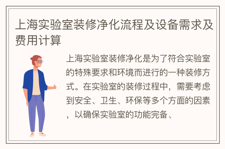 上海实验室装修净化是为了符合实验室的特殊要求和环境而进行的一种装修方式。在实验室的装修过程中,需要考虑到安全、卫生、环保等多个方面的因素,以确保实验室的功能完备、......【点击详情】