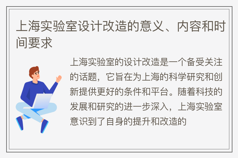 上海实验室的设计改造是一个备受关注的话题,它旨在为上海的科学研究和创新提供更好的条件和平台。随着科技的发展和研究的进一步深入,上海实验室意识到了自身的提升和改造的......【点击详情】