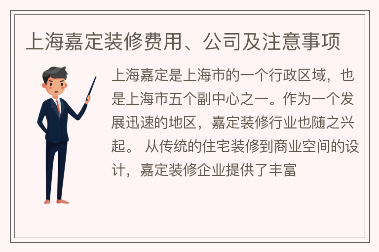 上海嘉定是上海市的一个行政区域,也是上海市五个副中心之一。作为一个发展迅速的地区,嘉定装修行业也随之兴起。 从传统的住宅装修到商业空间的设计,嘉定装修企业提供了丰富......【点击详情】